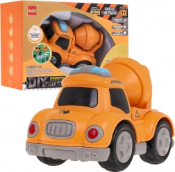 Vi præsenterer et interaktivt bygge-køretøj, som ikke blot er en tro model af en lastbil med blander, men også det ideelle legetøj til at udvikle dine børns færdigheder. Dine børn vil elske de realistiske lyde som arbejdslyde fra blanderen, glade melodier og børnelatter, ledsaget af blinkende lys på bilens tag.