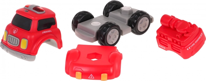 Interaktiv brandbil med magneter til børn fra 3 år. Bilen er lavet af plast af højeste kvalitet og har lyd- og lyseffekter. Ved at trykke på den øverste del af køretøjet hører du glade sange, brandmandsirener eller børnelatter. Lydeffekterne ledsages af farvede lys på køretøjets tag. Køretøjet kan skilles ad uden brug af værktøj. De enkelte dele er udstyret med magneter, så de let og sikkert kan sættes sammen. Legetøjet drives af 3 x AG13-batterier (medfølger).