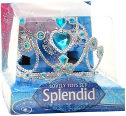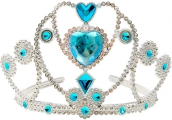• Krone: Smukt dekoreret sølvfarvet krone med blå plaststen, der giver et eventyrligt skær.