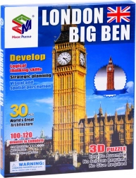 3D-puslespil London Big Ben er et ideelt valg for elskere af historie og arkitektur. Dette byggesæt med 30 dele muliggør nem samling uden brug af saks eller lim. Alle dele er placeret på specialark af materialer i høj kvalitet af karton, som sikrer lang holdbarhed.