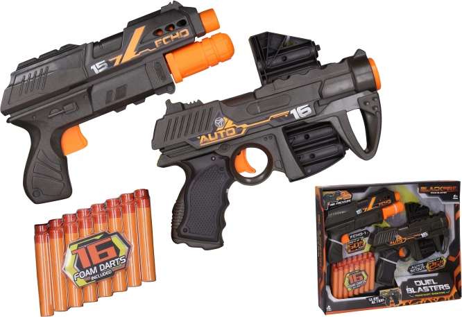 Nyd adrenalinfyldte skuddueller med to skumpistoler fra BLACKFIRE. Modellen Auto Scout giver hurtig skydning takket være magasin til 6 projektiler og nem ladning ved at trække løbet før hvert skud. Echo‑1 imponerer med pumpeladning, hvor projektilet indsættes direkte i løbet, samt en længere rækkevidde op til 15,2 m.