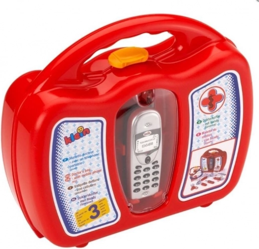 Dette lægesæt indeholder alt, hvad der er nødvendigt for at lege doktor: rød stetoskop i plast, legetøjsmobiltelefon (kræver batterier, som ikke medfølger), sprøjte, termometer, saks, otoskop, hammer, plaster, id-mærke, sygeplejerskepandebånd, æske til vatpinde, recept og kort til lægelige målinger. Den røde kuffert er lavet af holdbar plast med behageligt håndtag og gul clips for sikker lukning. Legetøjet støtter kreativ leg og hjælper børn med at vænne sig til lægebesøg.