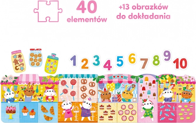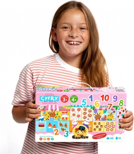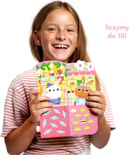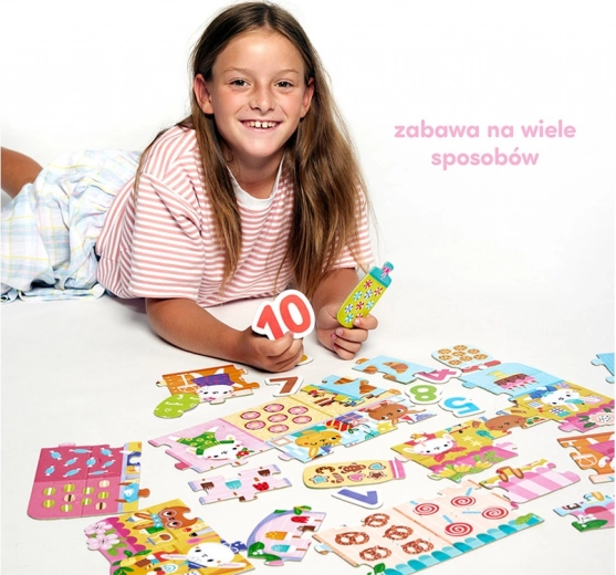 Begynd din matematiske rejse med de søde kaniner! Dette læringspuslespil er ideelt til førskolebørn, der vil lære at tælle til 10 og samtidig udvikle finmotorik og opmærksomhed.