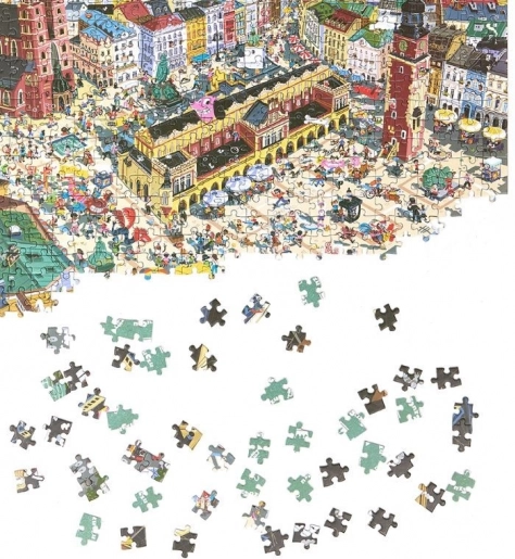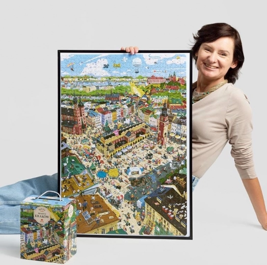 Saml skønheden i den historiske by Kraków med puslespillet Puzzlove, som indeholder 1000 brikker og viser fantastiske seværdigheder og steder i Kraków i størrelsen 48 x 68 cm.