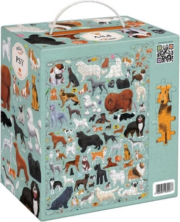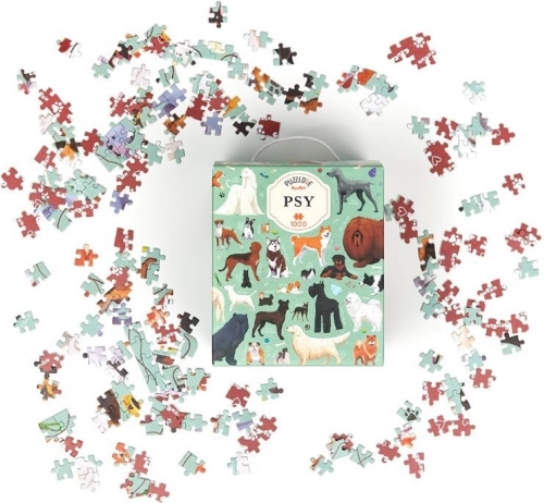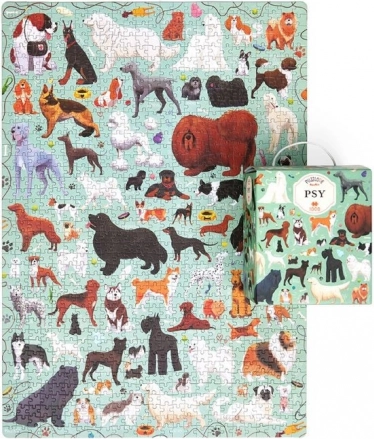 Læg et puslespil med motiv af hunde i forskellige racer fra Puzzlove. Der venter dig 1000 brikker og en detaljeret illustration i størrelsen 48 × 68 cm – et fremragende gaveidé til dyreelskere og en behagelig måde at slappe af på.