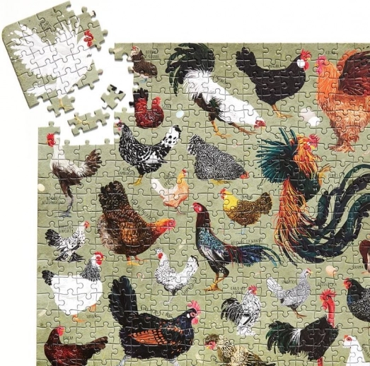 Oplev magien i det illustrerede motiv med høns af forskellige racer. Med 1000 brikker får du en behagelig udfordring, der udvikler tålmodighed og fokus, samtidig med at den tilbyder rolig afslapning efter en krævende dag. Perfekt til hyggestunder sammen eller til solo-samling.