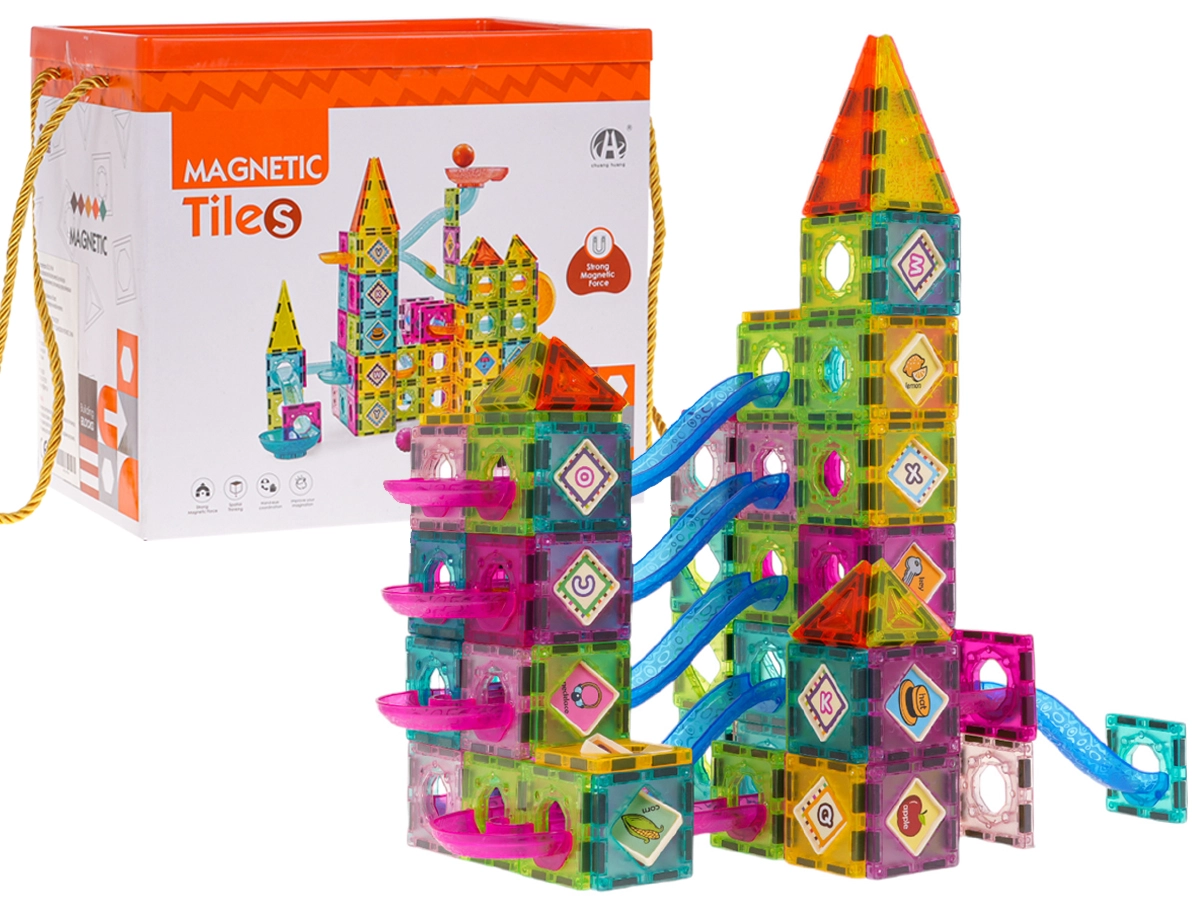 Det magnetiske byggesæt udvikler kreativitet, hånd–øje-koordination og finmotorik. Takket være de stærke magneter holder konstruktionerne solidt sammen, og børn kan eksperimentere med forskellige former og kugleflow. I pakken finder du alt, hvad du behøver – fra farvede kugler over magnetiske former til klistermærker og en overskuelig vejledning.