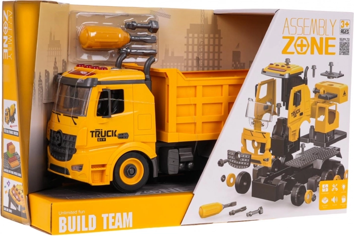 Den interaktive tipvogn, som kan skilles ad og samles igen med den medfølgende skruetrækker, giver børn timevis af kreativ leg. Takket være lys- og lydeffekter virker den realistisk og stimulerer fantasien i rolleleg på byggepladsen. Det holdbare plastmateriale er designet til daglig leg.