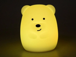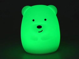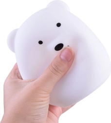 Denne silikone bjørnelampe er designet til børns sikkerhed og komfort. De bløde, afrundede former og det behagelige materiale gør, at barnet kan have den tæt ved sengen og endda kramme den. Lampen tilbyder 9 lysfarver og flere beroligende tilstande, så du altid nemt kan skabe den rette stemning til læsning, leg eller søvn.