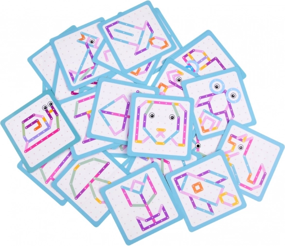 Inkluderer 28 farverige kort med mønstre. Børn efterligner gradvist former, lærer at planlægge og bliver sikre i at lægge mønstre.
