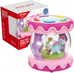 Musiklegetøj tromme Huanger er et multifunktionelt 3-i-1 legetøj, der kombinerer en tromme, en spilledåse og en projektor. Det giver barnet forskellige legeaktiviteter til udvikling af sanser og læring.