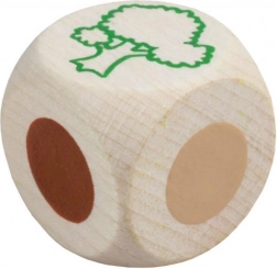 Forskellige former og farver understøtter farvegenkendelse, sortering og rumlig forståelse. Terningen bestemmer farven, og børnene vælger den rigtige brik.