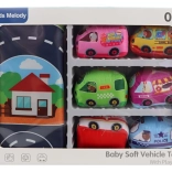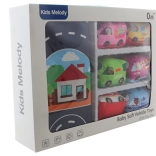 Opdag et sjovt og praktisk legetøj til de mindste: sættet indeholder en stofmåtte, der også fungerer som en bærepose, samt 6 bløde køretøjer til sikker leg fra 0+. Ideelt til både hjemmet og rejser.
