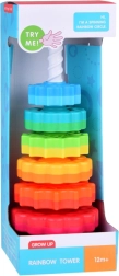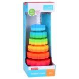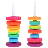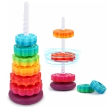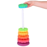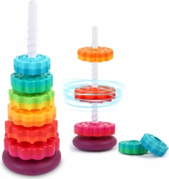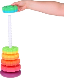 Stableringe med forskellige teksturer understøtter sansemæssig perception og koncentration. At stable fra den største til den mindste hjælper med at udvikle logik, tålmodighed og tidlige matematiske færdigheder. De klare farver understøtter visuel stimulering og læring af farver.