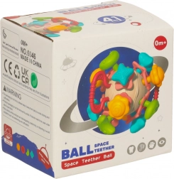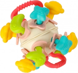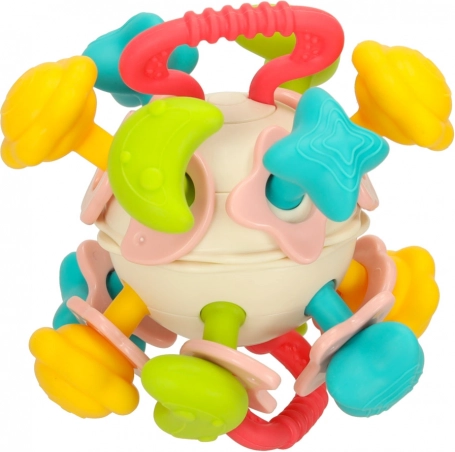 Silikondele fungerer som en sikker bidering, der lindrer ømme gummer. Bolden motiverer barnet til at gribe, dreje og flytte fra hånd til hånd, hvilket bidrager til udvikling af finmotorik og øje-hånd-koordination.