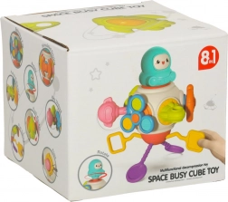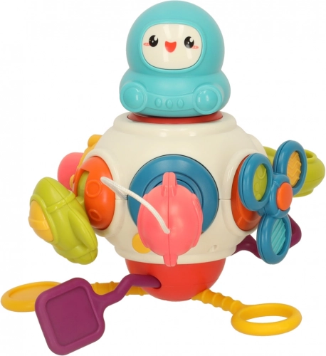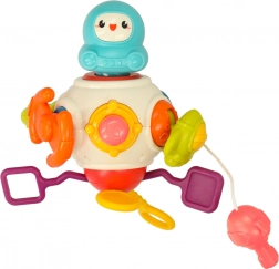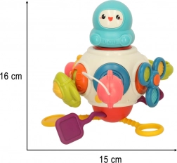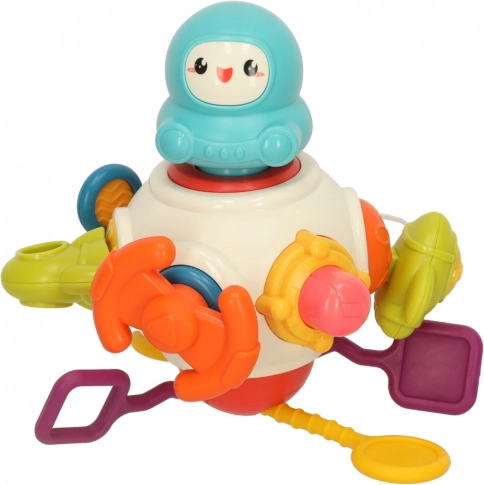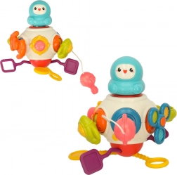 Dette alsidige sensoriske legetøj med en sød figur giver børn mange måder at udforske verden af berøring, farver og bevægelse på. Takket være forskellige teksturer samt roterende, skydende og klemmede elementer træner børn hånd-øje-koordination og styrker fingrene. De bløde silikondele fungerer samtidig som en sikker bidering, der hjælper med at berolige irriterede gummer.