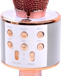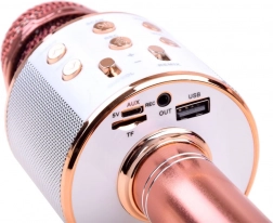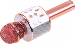 Nyd hjemmekaraoke når som helst og hvor som helst med denne kompakte, trådløse mikrofon med indbygget højttaler i elegant rosegold-design. Den tilbyder Bluetooth 4.0 for nem forbindelse til telefon eller tablet, justering af stemme, bas, diskant og echo samt ren lyd takket være støjreduktion. Det lette, bærbare design sikrer sjov til fester og for børn – uden behov for app-installation.