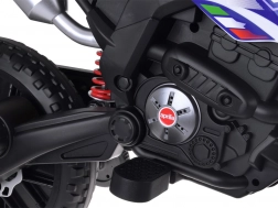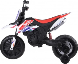 Elektrisk børnemotorcykel Aprilia RX125 er designet til små fans af mærket og alle unge motorcykelentusiaster. Den er udført med fokus på detaljer og i materialer af høj kvalitet, hvilket giver den et realistisk udseende.