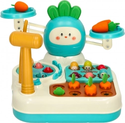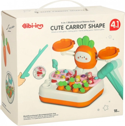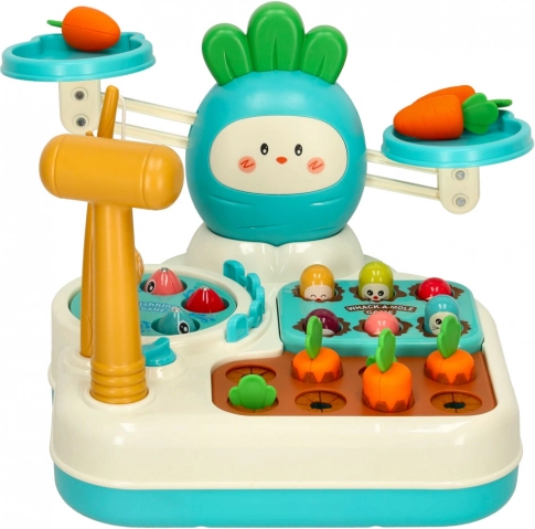 Dette farverige, multifunktionelle sæt giver børn helt op til fire forskellige aktiviteter i ét. Med hammer, fiskestang, gulerødder og vægtskål lærer børn balance og sammenligning af vægt, træner opmærksomhed og øver tålmodighed og præcision.