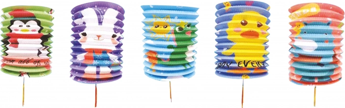 Lampion cylinder Dyr er et fremragende valg til enhver fest eller dekoration, takket være de søde dyremotiver i fem varianter.