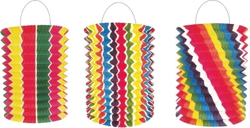 Papirlanterne i regnbuefarver, cylinder 16 cm