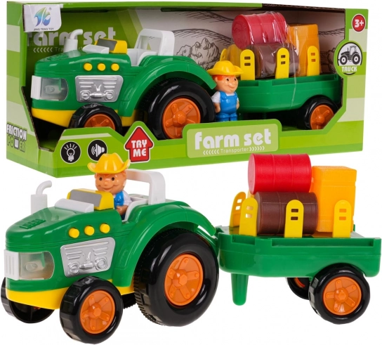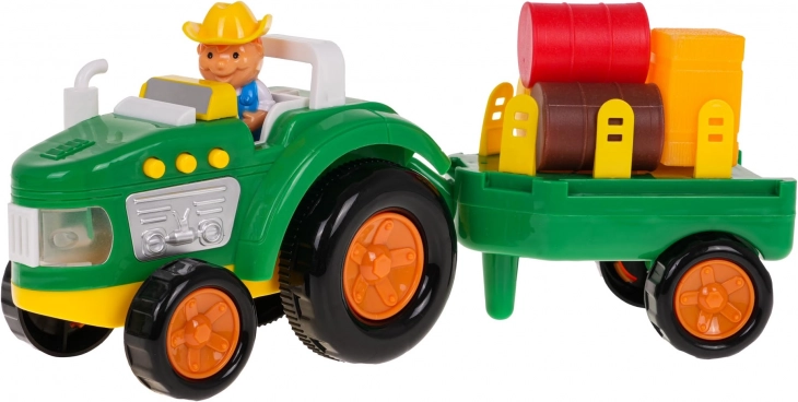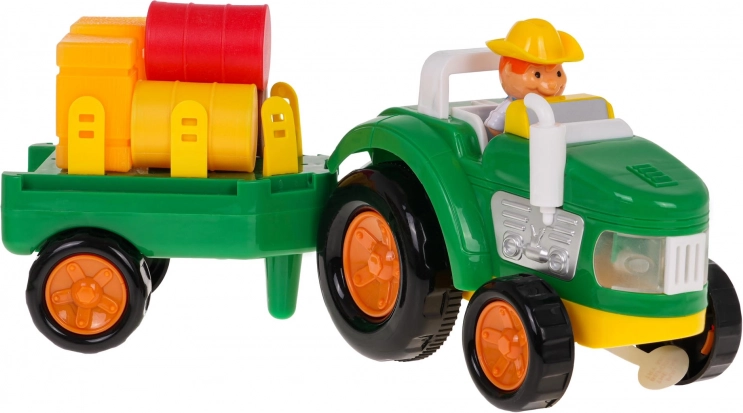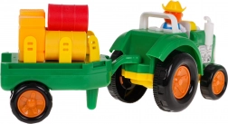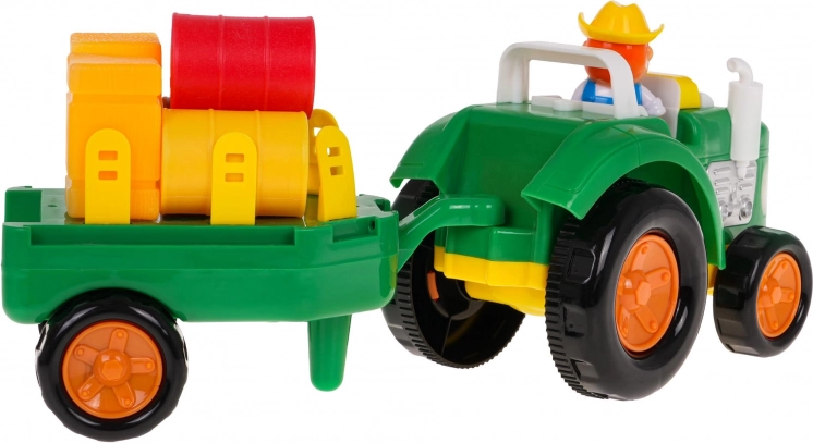 Væk barnets fantasi med en farverig, interaktiv traktor med aftagelig trailer. Denne traktor er udstyret med lydeffekter, såsom lyde af opstart, maskinarbejde og horn, samt lyseffekter i form af blinkende forlygter. Sættet indeholder en landmandsfigur og forskellige halmballer og -klodser for en endnu mere autentisk gårdstemning.