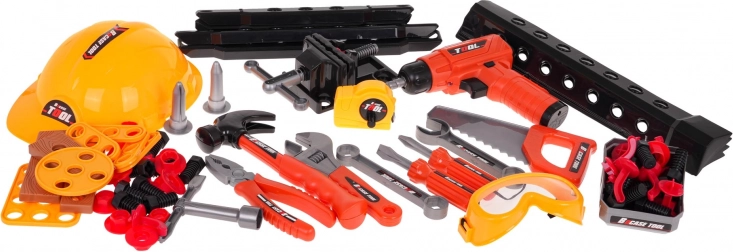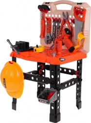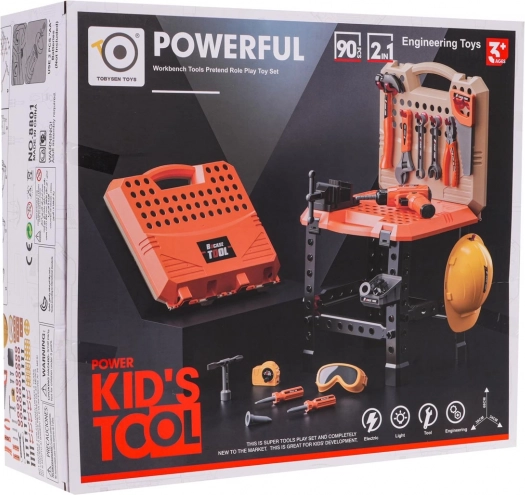 Opdag den sjove gør-det-selv-verden med dette børneværkstedssæt, som indeholder 90 forskellige komponenter, og giver mulighed for at samle enten et værksted eller en værktøjskuffert. Sættet er ideelt til at udvikle børns fantasi og finmotorik.