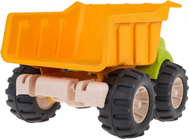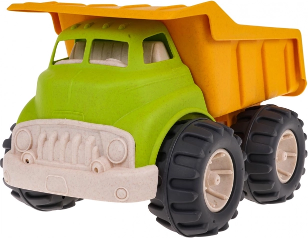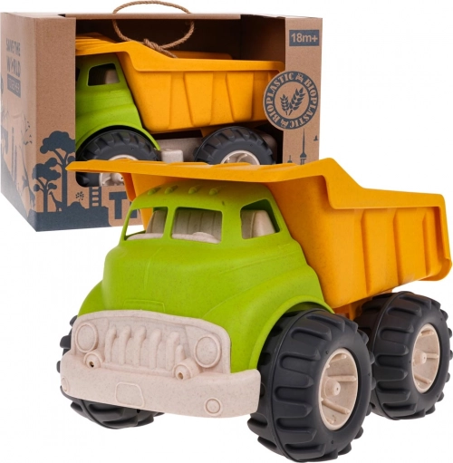 Tipvognen er fremstillet af bioplast, hvilket er skånsomt mod miljøet og samtidig sikkert for børn.