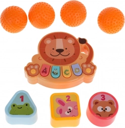 Klaveret med melodier og dyrelyde kan tages ud og medbringes overalt. Sammen med formsorteren og kuglerammen giver det timevis af meningsfuld leg.