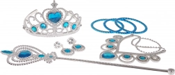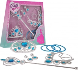 Dette veludstyrede sæt forvandler enhver leg til et magisk eventyr. Skinnende plast “diamanter” og imitationer af ædelsten i sølv‑blå udførelse giver ethvert prinsesseoutfit ekstra glans. Tilbehøret er designet med fokus på detaljeret udførelse og behagelig pasform.