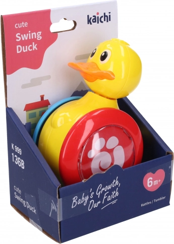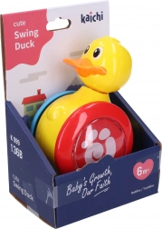Farverig and på hjul fanger børns opmærksomhed med sin gyngebevægelse og ranglelyde fra små kugler.