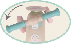Det drejelige styr med sikkerhedssystem forhindrer klemskader på fingre og uønsket rotation. De gummibelagte håndtag ligger godt i hånden, også for små børn.