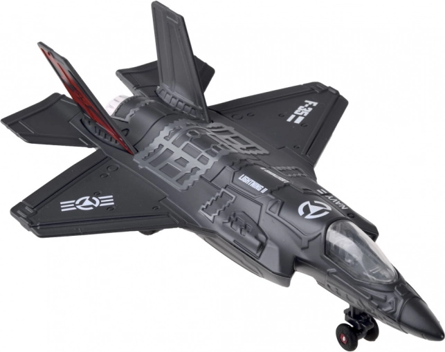 Oplev en detaljeret metalmodel af det militære fly F-25, som kombinerer robust udførelse med attraktive funktioner for børn fra 3 år. Når den trækkes tilbage, kører den frem takket være pull-back-mekanismen. Ved tryk mod underlaget aktiveres motor- og skydelyde, og LED-belysning i cockpittet tændes, hvilket øger realismen i legen.