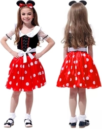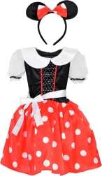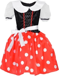 Det charmerende lille musekostume kombinerer klassisk rød med lyse prikker og en elegant sort overdel. Skinnende detaljer på overdelen og pufærmer giver kjolen et festligt præg, mens den forede nederdel holder en flot form for den perfekte "wow"-effekt til enhver fest.