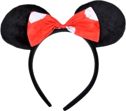 Det bløde hårbånd med plyssede ører og rød sløjfe fuldender kostumet og sidder sikkert på hovedet.