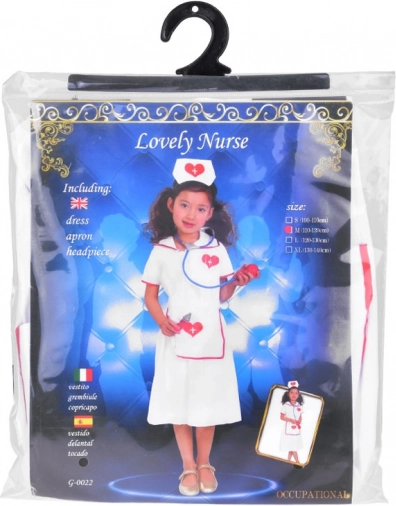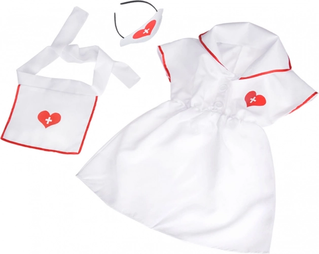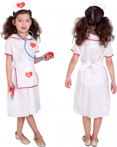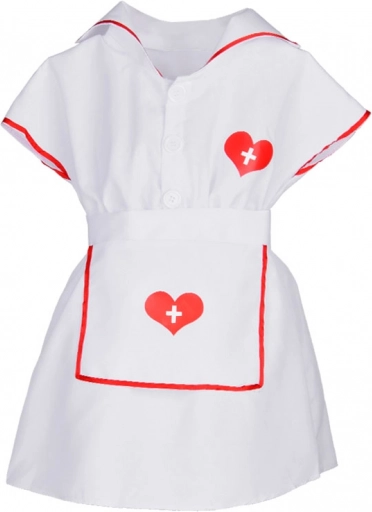 Dette pigesygeplejerskekostume er et perfekt valg til fastelavn, børnefødselsdage og hjemmets “klinik”. Takket være de markante røde detaljer, hjerter og kors virker det realistisk og attraktivt, så børnene nemt kan indtage rollen som omsorgsfuld sygeplejerske.