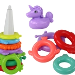 Legetøjet er lavet af holdbar og sikker plast, er let at holde rent og egner sig til leg både hjemme og i vand. Med sine farverige ringe og enhjørningefiguren understøtter det kreativitet og fantasi og er en fantastisk hjælp til udvikling af manuelle færdigheder.