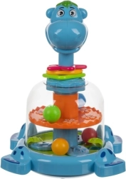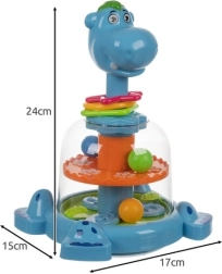 Gennemsigtigt mave på flodhesten med roterende karusel og fire farverige kugler giver en fascinerende oplevelse for børn.