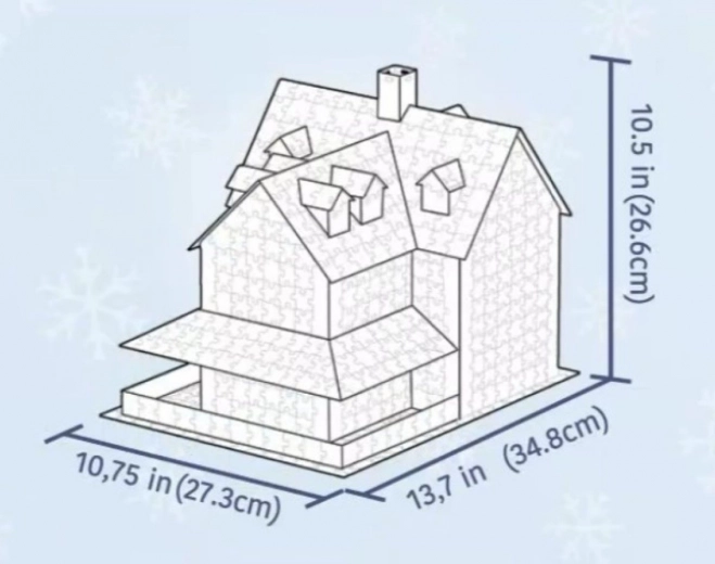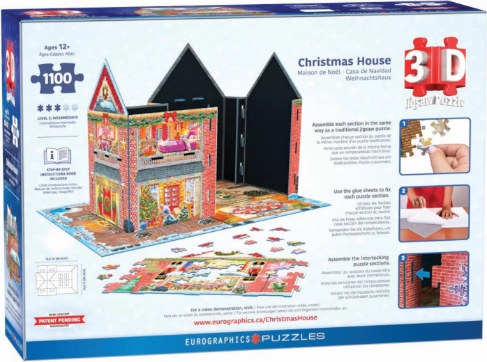 Oplev julens magi med det unikke 3D-puslespil med julehytte fra EUROGRAPHICS. Dette puslespil med 1100 brikker kombinerer en autentisk oplevelse af klassisk puslespil med en solid og stabil 3D-konstruktion. Takket være de fængende julemotiver og mellemsvær sværhedsgrad får hele familien sjov og skaber en smuk juledekoration.