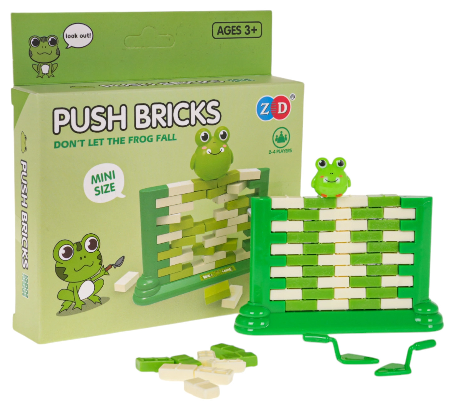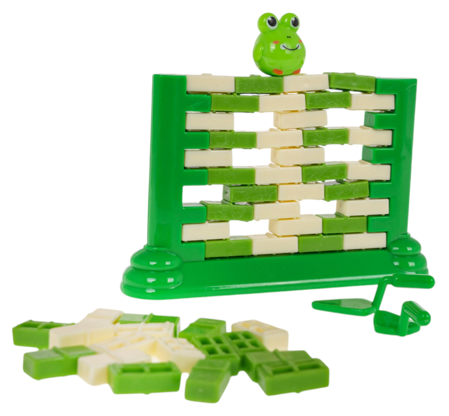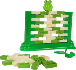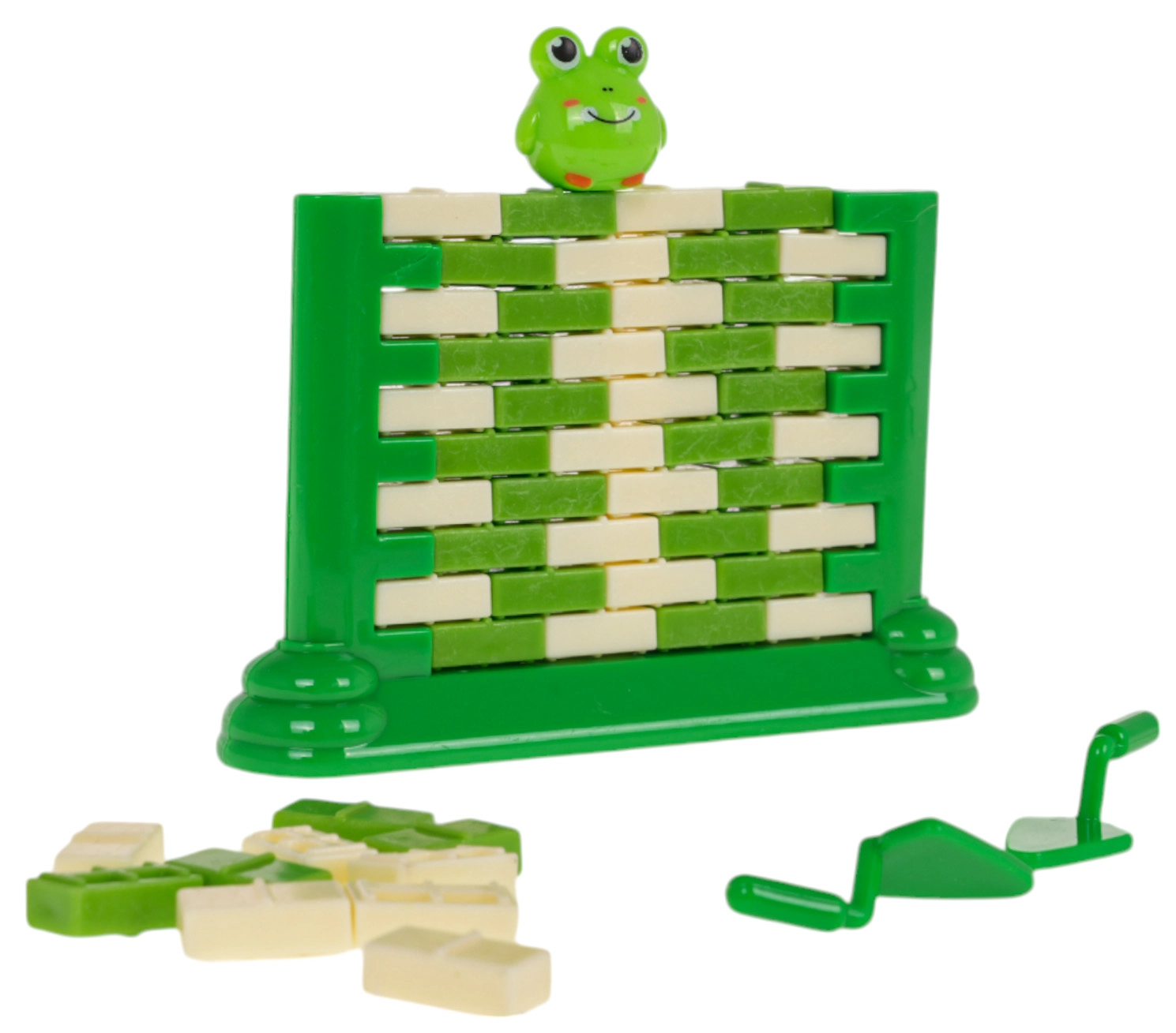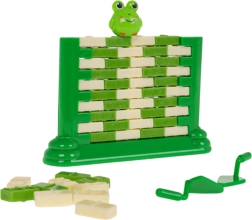 Et sjovt færdighedsspil for børn fra 3 år, hvor I bygger en væg af “små mursten” og forsigtigt skubber enkelte klodser ud med en lille ske. På toppen sidder en frøfigur – målet er, at den ikke falder ned. Spillet udvikler koncentration, logisk tænkning og hånd-øje-koordination og byder samtidig på rigtig god underholdning for hele familien.
