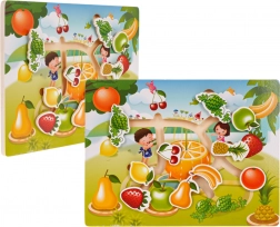 Dette træpuslespil er designet til de mindste børn, som gerne vil udforske legetøjsverdenen gennem leg. Det indeholder farverige dele, der illustrerer forskellige frugter, som placeres i en træplade.