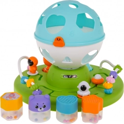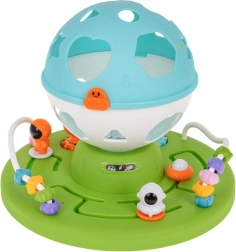 Denne interaktive legetøjsenhed kombinerer formsortering, lys- og lydeffekter samt motoriske aktiviteter i én sjov helhed. Barnet lægger former i de rigtige huller, drejer tandhjul og udforsker labyrinter, hvorved hånd-øje-koordination og problemløsning trænes naturligt.