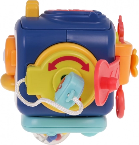 Giv dit barn både sjov og læring med dette multifunktionelle legetøj. Det indeholder forskellige elementer, som barnet kan trykke på, dreje og trække. Disse aktiviteter udvikler motorikken og stimulerer barnets sanser med livlige farver og former.
