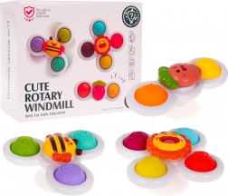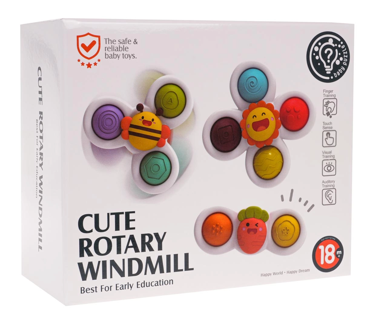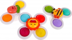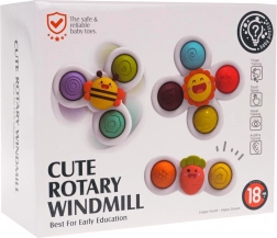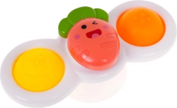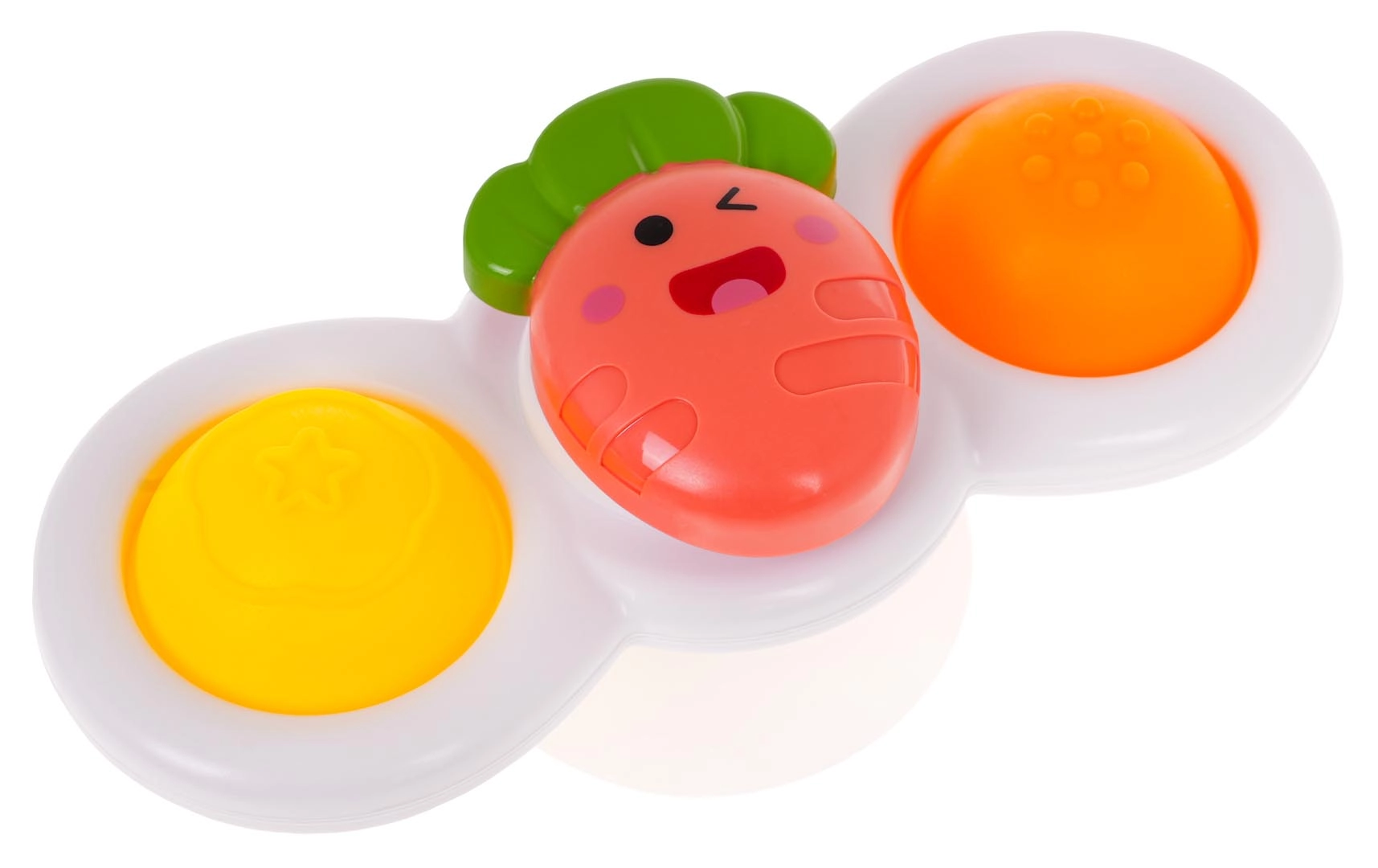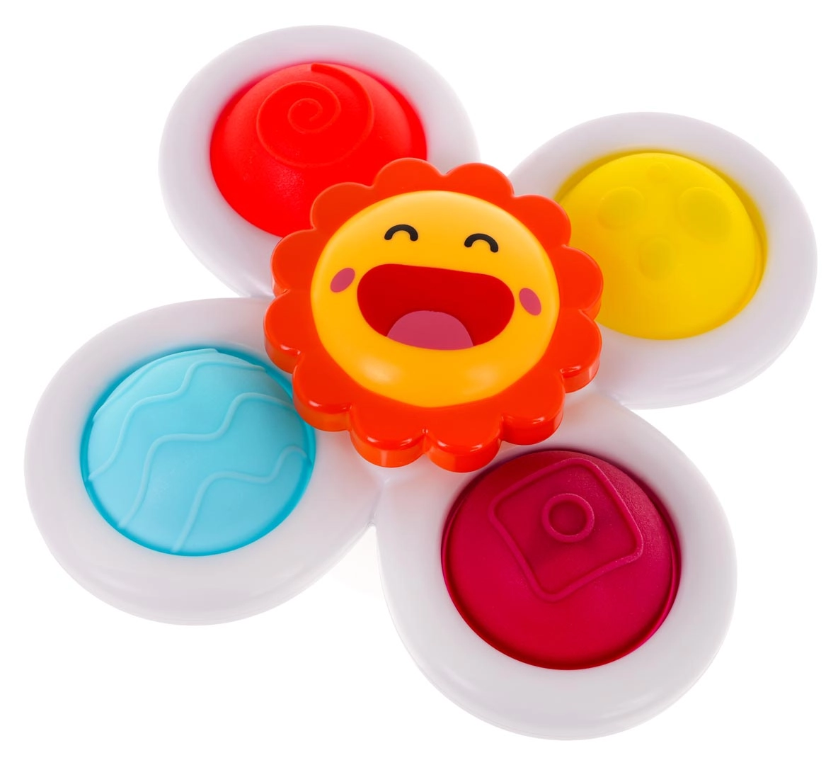 Tre søde motiver – sol, bi og gulerod – forener legende design med praktiske funktioner til barnets udvikling. Den stærke sugekop på bagsiden gør det muligt at fastgøre legetøjet på forskellige glatte overflader, mens de holdbare lejer sikrer en langvarig og jævn spin. Takket være det vandafvisende design egner spinnerne sig også perfekt til badet.