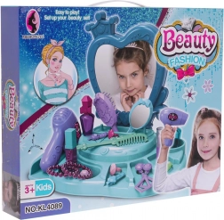 Sættet inkluderer et toiletbord med et smukt spejl, en hårtørrer, en kam, en hårbørste og andre kosmetiktilbehør, der giver timevis af sjov.