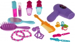 Med det rige sæt tilbehør i klare farver, der efterligner virkelige behov for hårstyling og kosmetik, giver det børn mulighed for at lege som små frisører eller stylister.