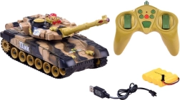 Denne fjernstyrede tank giver en medrivende kampoplevelse: ved et præcist træf høres lyden af et ramt mål, og indikatoren bag på modstanderens tank slukker. Efter tre træffere er modstanderen ude af spil i ca. 30 sekunder. Det roterende tårn muliggør skydning i 360°, og farvet LED-belysning ser fantastisk ud selv i mørke.