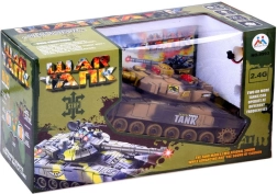 Tanken drives af det medfølgende batteri for lavere driftsomkostninger. Den multifunktionelle fjernbetjening giver jævn kørsel frem/tilbage, 360° rotation på stedet, styring til siderne, rotation af tårnet samt affyring. Inkluderer tankfører-figur og maskingevær for en endnu mere realistisk leg.