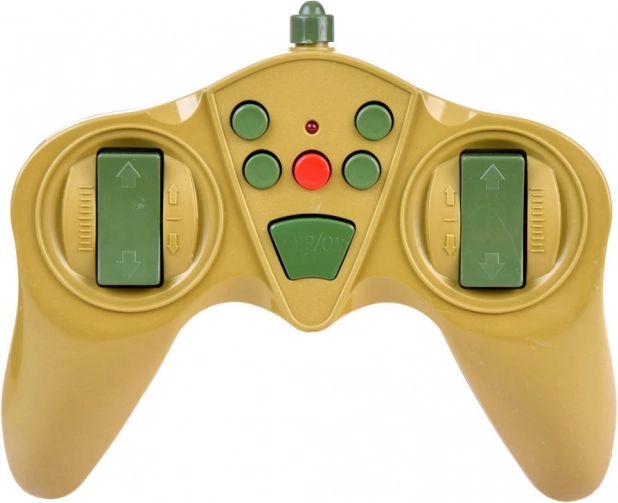 Ergonomisk to-stick fjernbetjening muliggør kørsel frem/tilbage, styring, 360° rotation, kontrol af tårn og skydning uden signalforstyrrelse.