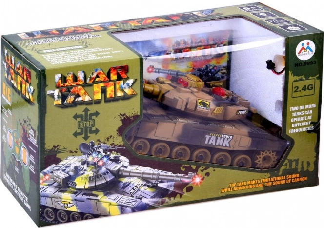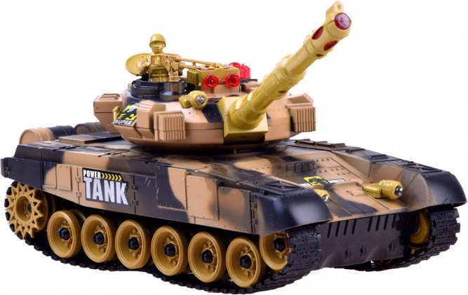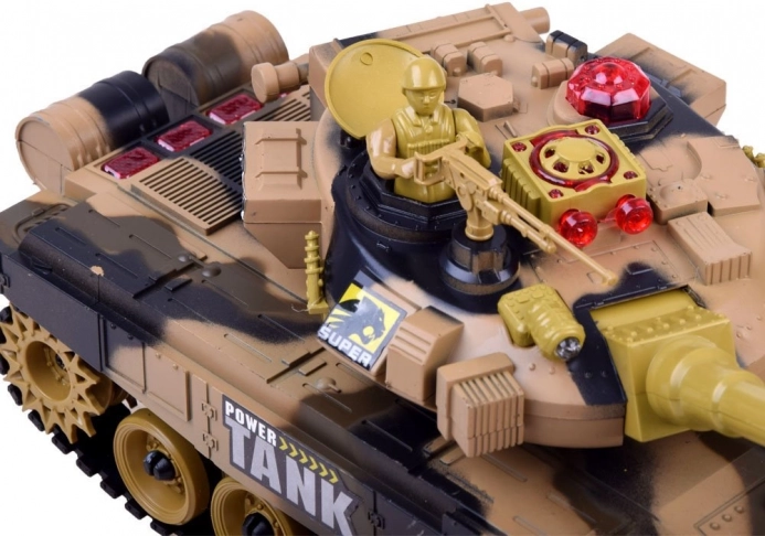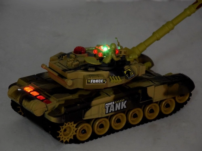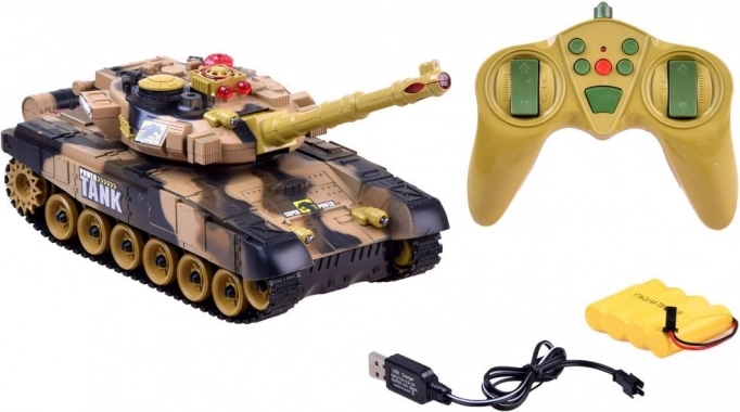 Tanken drives af det medfølgende batteri for lavere driftsomkostninger. Den multifunktionelle fjernbetjening giver jævn kørsel frem/tilbage, 360° rotation på stedet, styring til siderne, rotation af tårnet samt affyring. Inkluderer tankfører-figur og maskingevær for en endnu mere realistisk leg.